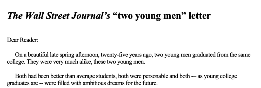 Here's your free copy of the famous "Two Young Men" Wall Street Journal Letter that sold over $1 billion worth of subscriptions for the Wall Street Journal.