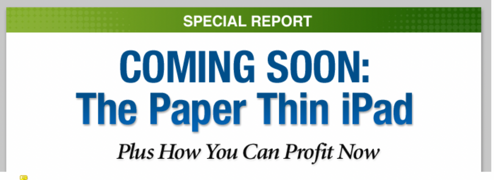 featuring my ultimate "story selling" email, Coming Soon. The Paper Thin iPad.